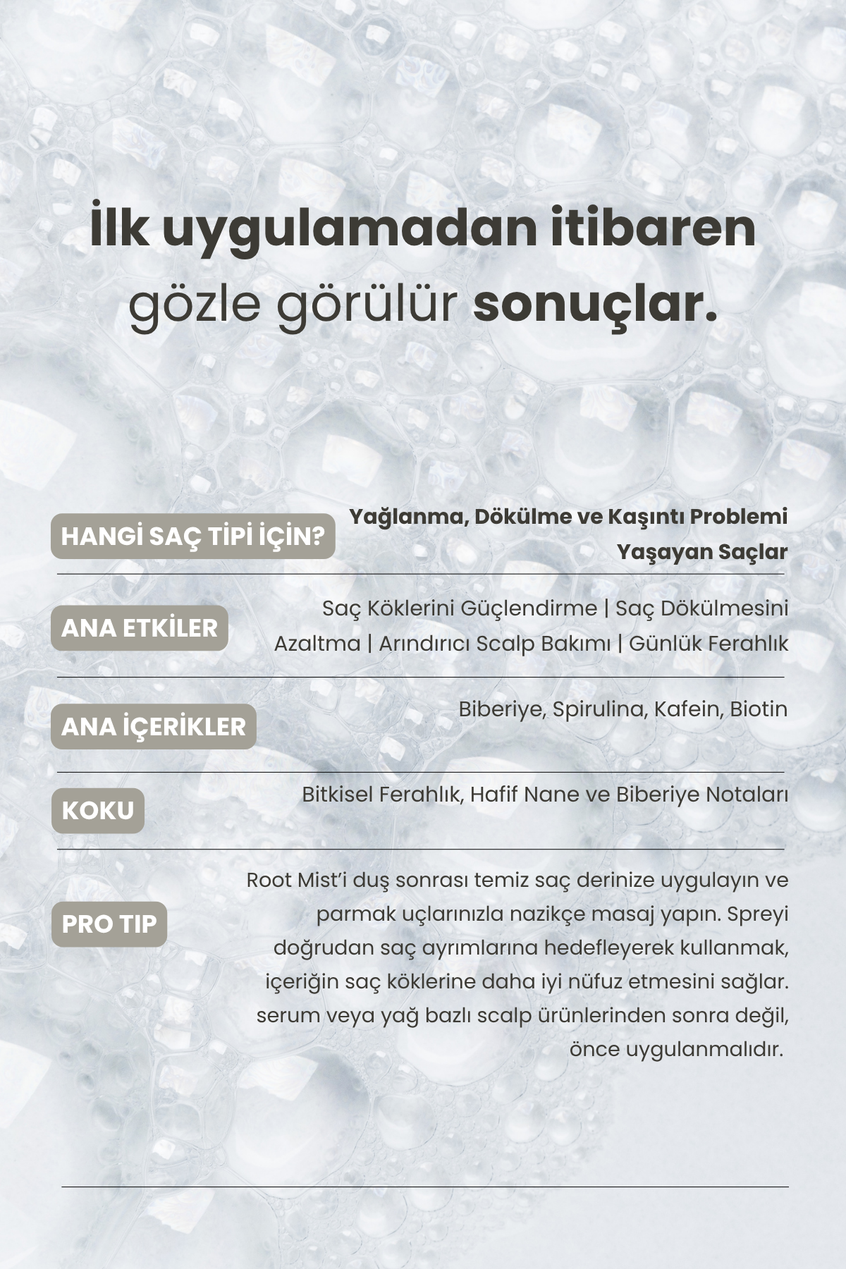 "Follicle Boost" protokolü için; banyo sonrası saç derinizi Scalpify Root Mist ile nemlendirin, ardından bu konsantre serumu uygulayarak onarımı mühürleyin.