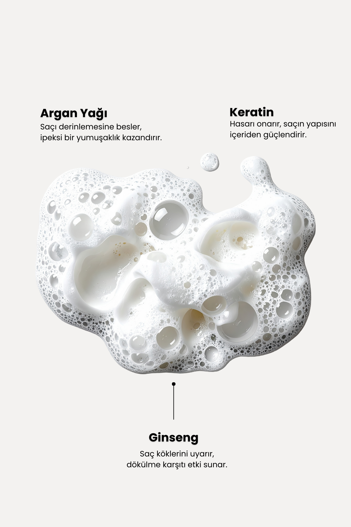 • "Formülünde yer alan Argan yağı, Keratin, Spirulina, Ginseng, Shea yağı, Kolajen ve Biotin; saçları hem kökten uca güçlendirmeye hem de dış etkenlere karşı direnç kazandırmaya yardımcı olur. Bu içerikler aynı zamanda saçın nem dengesini korur, kırıkları azaltır ve ipeksi bir görünüm sağlar.