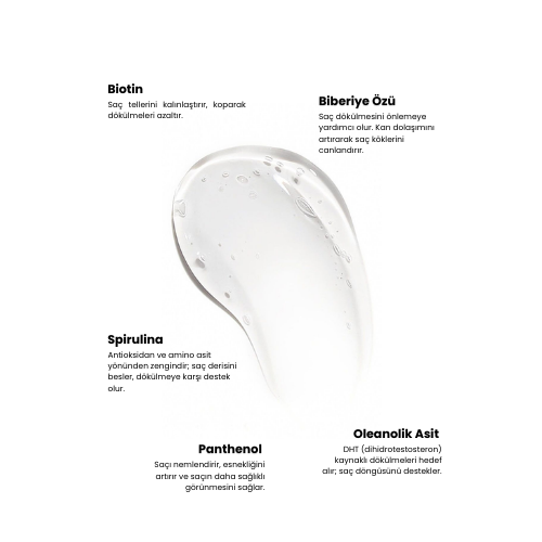 Saç dökülmesini azaltmaya ve saç köklerini güçlendirmeye yardımcı bitkisel içerikli arındırıcı şampuan. Biberiye özü, bitki bazlı aktif bileşenler ve Kolajen, Biotin ve Peptid desteği ile saç köklerini güçlendirerek saç dökülmesini azaltmaya ve sağlıklı saç büyümesini desteklemeye yardımcı olur. Hafif ve nazik formülü sayesinde tüm saç tiplerine uygundur ve saç derisinde ferahlatıcı bir etki bırakır.